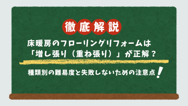 便利なサービスや商品 床暖房のフローリングリフォームは「増し張り(重ね張り)」が正解?種類別の難易度と失敗しないための注意点 2026年4月8日 吉沢不動産 https://realestate-shortstory.com/wp-content/uploads/2025/01/6ff7b7a85cf6a5e63d7e7a8eff24ddb5.png 不動産小噺