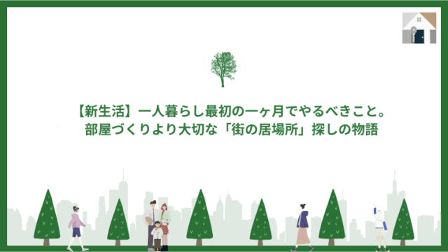 借りて住むときのギモン 【新生活】一人暮らし最初の一ヶ月でやるべきこと。部屋づくりより大切な「街の居場所」探しの物語 2026年4月8日 吉沢不動産 https://realestate-shortstory.com/wp-content/uploads/2025/01/6ff7b7a85cf6a5e63d7e7a8eff24ddb5.png 不動産小噺